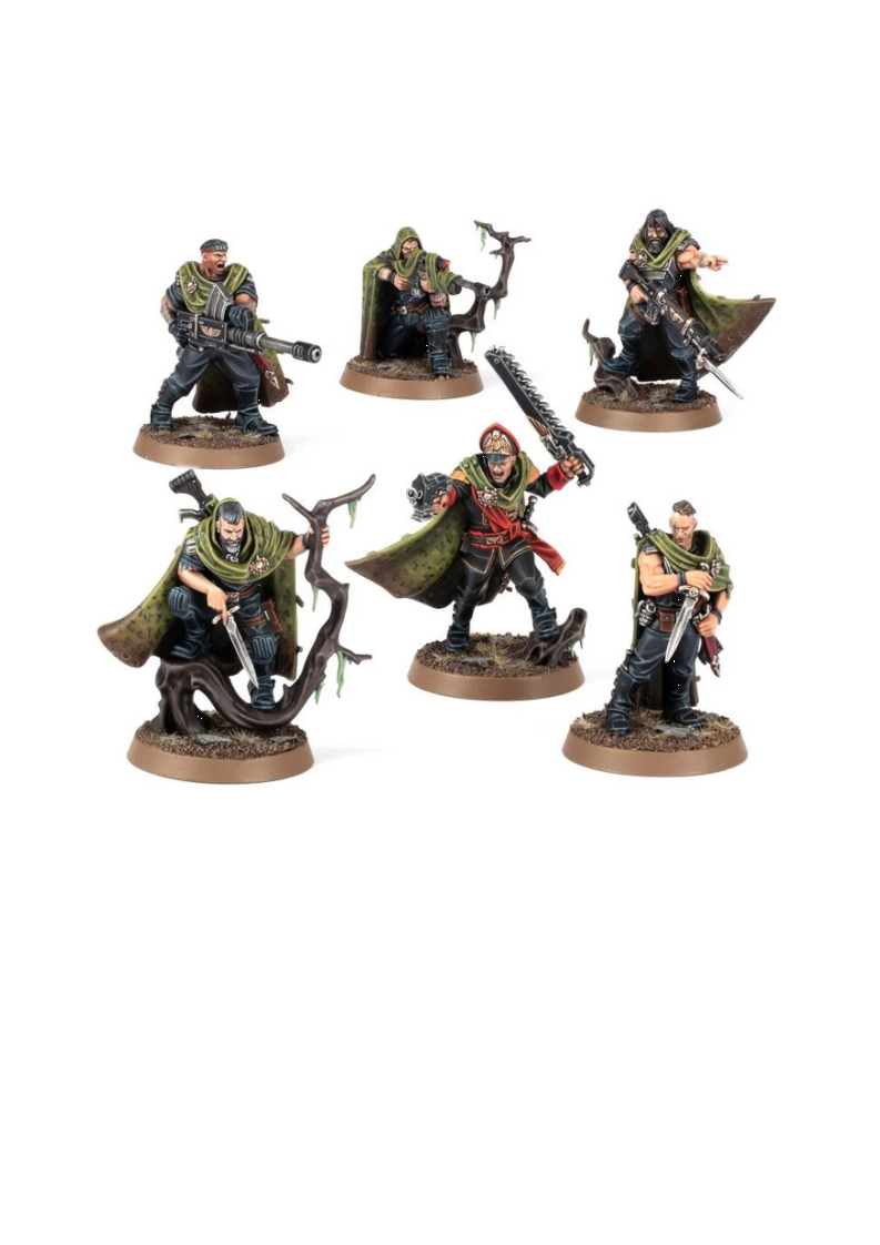 Αυτό το κουτί περιέχει 1 Colonel-Commissar Ibram Gaunt, 1 Colonel Colm Corbec, 1 Major Elim Rawne, 1 Major Elim Rawne, 1'Try Again' Bragg και 1 Sergeant Scout Oan Mkoll .